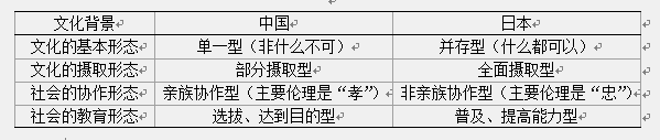 表1 中日近代化的文化背景比较[1]