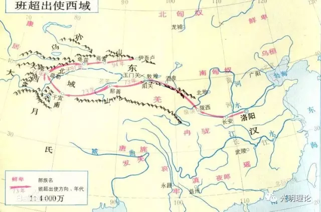 东汉时,班超为西域都护,曾经营西域31年,政绩卓著,成效明显。西域“五十余国悉纳质内属,其条支、安息诸国,至于海滨四万里外,皆重译贡献”。公元97年,班超派部下甘英出使大秦(罗马),抵条支,欲渡,为安息船人所阻,只得“穷临西海而还”。甘英走南道赴大秦,虽中途而归,但其西行的路程远比张骞要长,其实际影响也比张骞要大。就在甘英出使大秦后不久,也就是公元100年,“远国蒙奇兜勒皆来归服,遣使贡献”。东汉朝廷对蒙奇兜勒遣使之事高度重视,还特意“赐其王金印紫绶”。“蒙奇兜勒”正是“Macedones(马其顿,时属罗马帝国)”之音译。马其顿遣使内附打通了中西间的直接交往,在中西交往史上占有十分重要的地位,而这件事本身也印证了中国与罗马陆上交通的存在。