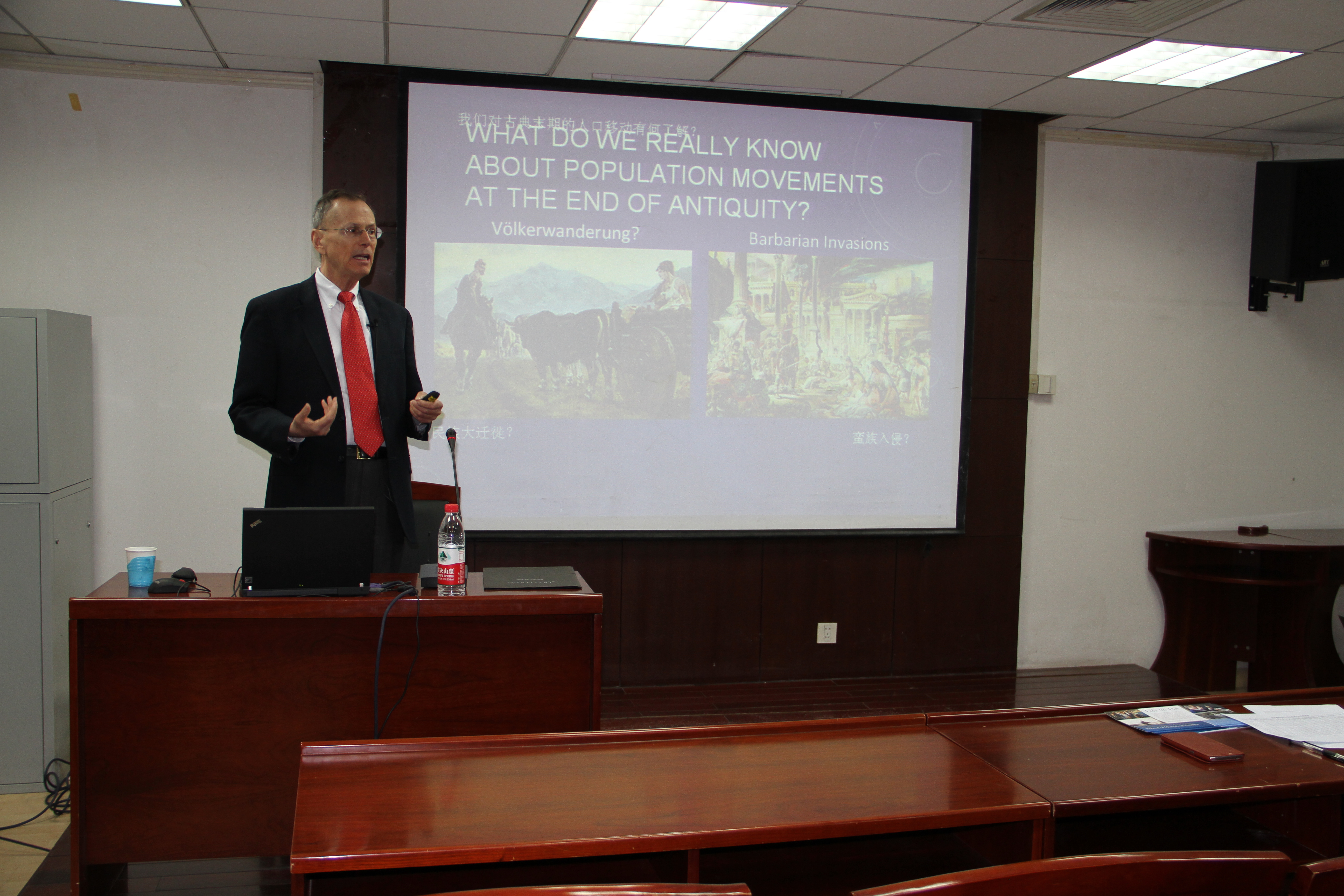 2016年4月12日,应我中心刘林海教授邀请,美国普林斯顿高等研究院历史学教授帕特里克J.盖瑞(Patrick J. Geary)先生在主楼600作学术讲座。讲座题目为《由基因史评估蛮族迁徙:问题与可能》。我中心侯树栋教授、刘林海教授和相关专业的研究生参加了此次学术活动。